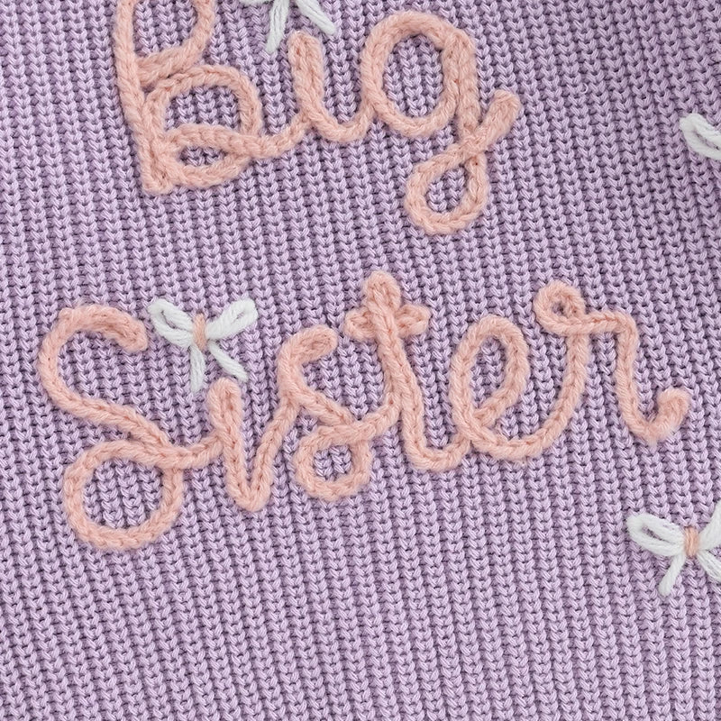 With its soft lilac hue and cosy feel, this chunky knit jumper is made to celebrate the sweetest big sisters. Embroidered with “Big Sister” across the front, it’s a lovely way to mark her new role. The relaxed fit makes it easy to move in and layer over her favourite pieces, from leggings to rompers to twirly skirts.